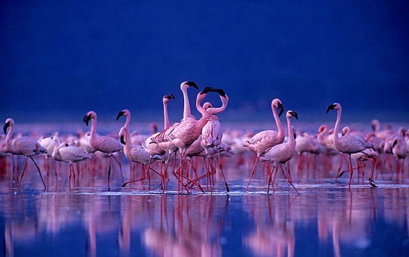 Flamingos’ species in Lake Nakuru national park include Greater Flamingo and Lesser Flamingo